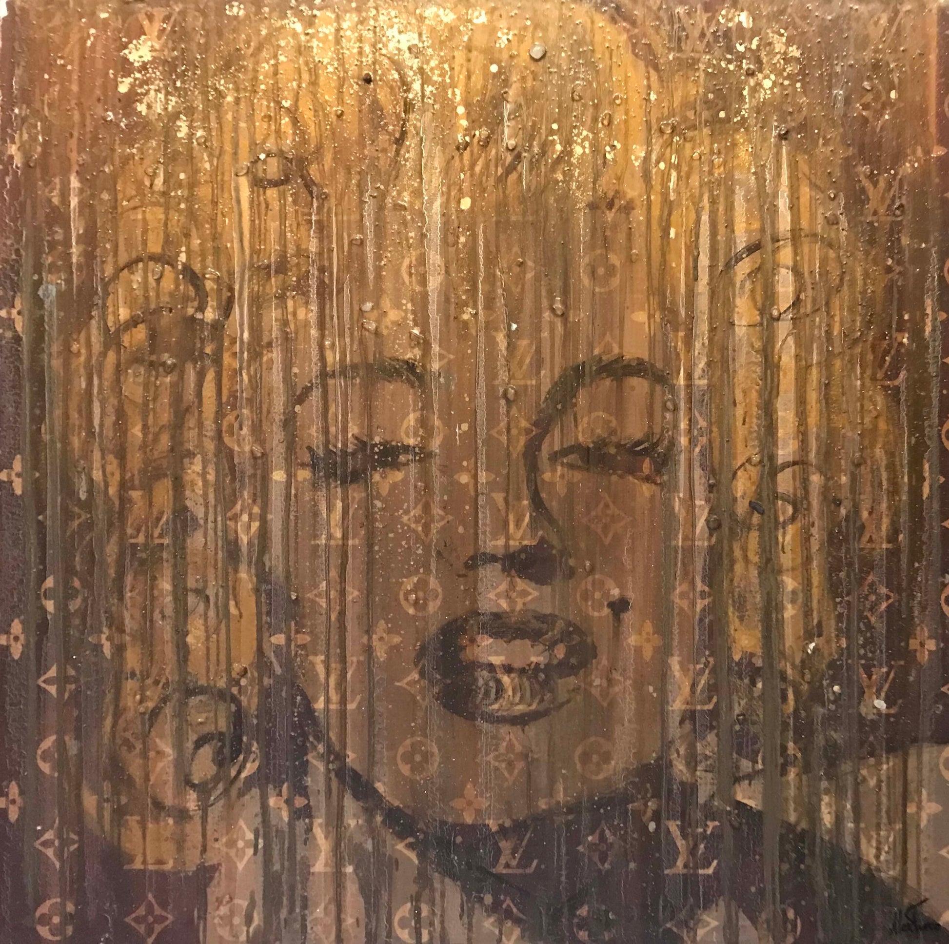 L’opera esemplifica molto chiaramente il linguaggio di Alex Turco sospeso tra immagine massificata e riflessione sulle tecniche di riproduzione. L’immagine di Marylin, icona pop per eccellenza, invade l’intera composizione, ed è su questa superficie che si attua l’elaborazione grafica di Turco. Il volto della diva è riconfigurato secondo un pittoricismo che segue le linee dell'espressionismo astratto americano, e, in particolare delle rielaborazioni degli oggetti pop di Jasper Johns o di Robert Rauschenberg. Così l'immagine viene sporcata da un massiccio intervento di dripping, cioè di colatura del colore. Inoltre Alex Turco apre la composizione di quest'opera ad una provocatoria sublimazione del lusso e del consumismo ad opera d'arte. Infatti la superficie dorata del dipinto viene interpolata e sovrapposta con la texture di una nota firma di prodotti di lusso.