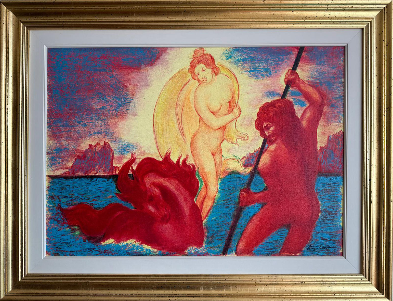 Aligi Sassu, nato a Milano nel 1912 e scomparso nel 2000, è stato un pittore e scultore italiano di grande rilevanza. Il suo lavoro si è sempre contraddistinto per l'interesse verso il movimento e la forza fisica, qualità che hanno trovato espressione soprattutto nella rappresentazione dell’uomo a cavallo. Negli anni ’70, insieme a Bruno Munari, ha firmato il manifesto pittorico “Dinamismo e riforma muscolare”, proponendo un ritorno a forme anti-naturalistiche in senso dinamico. L’influenza di pittori come Delacroix, in particolare nelle sue battaglie, è evidente in buona parte della sua produzione.