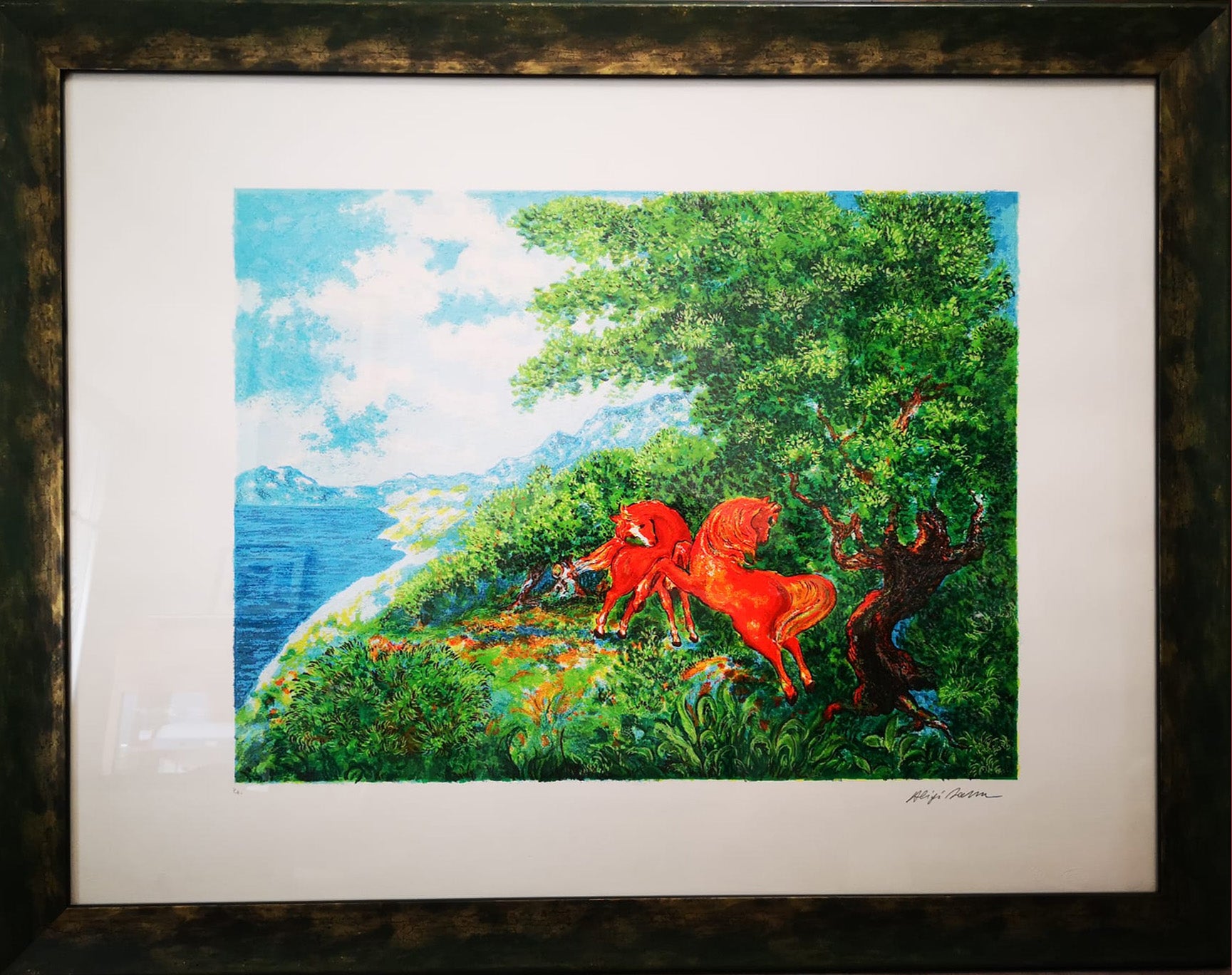 Le rappresentazioni di animali nell’arte hanno origini antichissime, tanto da comparire anche sulle pitture rupestri di epoca primitiva. Per questioni di culto vari tipi di animali compaiono nelle testimonianze di diverse civiltà di epoca antica. E’ soprattutto nel medioevo, nell’ambito del Gotico Internazionale, che le raffigurazione di animali si diffondono come veri e propri ritratti dal vero, sia all’interno di opere o nei quaderni di disegni e bozzetti. La presenza degli animali come soggetti nell’arte rimarrà costante fino all’epoca contemporanea. Gran parte della produzione, soprattutto grafica, di Aligi Sassu è focalizzata sulla figura del cavallo. Animale nobile, simbolo di bellezza ed armonia il cavallo e stato più volte un soggetto protagonista nella storia dell’arte. A partire dal Trecento la sua presenza e sempre stata d’obbligo nelle scene di battaglia o nei monumenti equestri e, per i pittori, e sempre stata una sfida quella di rappresentarlo con precisione anatomica e resa naturalistica.