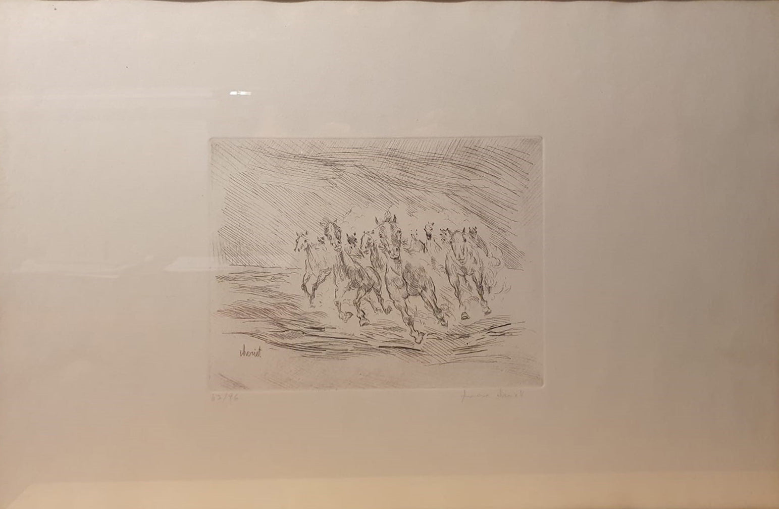 In questa opera Cheriet Amar,è pienamente dinamica mentendosi coerente con il suo linguaggio figurativo, concentrandosi su un disegno frenetico. Il disegno selvaggio e libero dell’artista è conforme alle sue caratteristiche in cui i cavalli arabi, la sua passione, vengono rappresentati con un plasticismo bene calibrato. Sicuramente anche grazie all’arte grafica di cui si serve si sottolinea la loro bellezza.