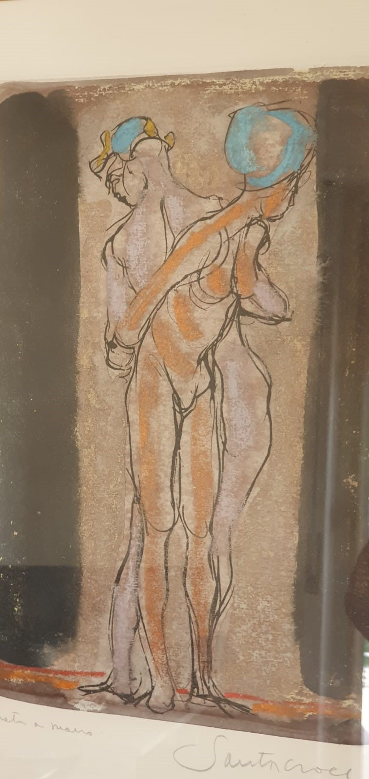 L’opera fa parte di una serie di raffinate acqueforti ritoccate a mano nelle quali Antonio Santacroce si focalizza sullo studio della figura umana. L’interesse principale sta nel fatto che le figure vengono interpretate da Santacroce con le peculiarità della sua estetica, derivante da un mix di citazionismo, surrealismo e metafisica.