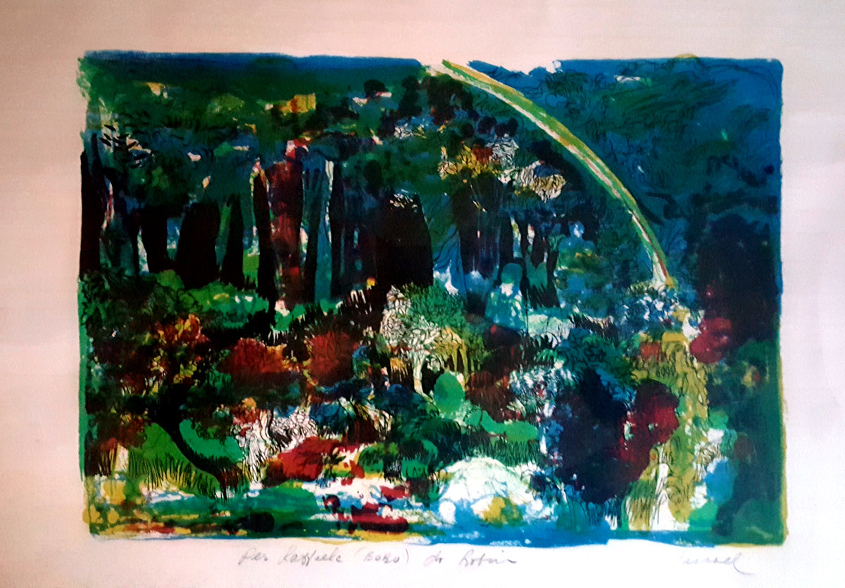 L'opera, nel riportare una vegetazione lussureggiante, quasi surreale nella sua floridezza, sembra più un pretesto per un'esplosione di energia, per il rilascio di una carica emotiva attraverso un uso simbolico del colore. La composizione si presenta estremamente elaborata. Il disegno, più che altro abbozzato, crea la struttura per la realizzazione di questa porzione di vegetazione fantastica, che va a riempire tutta la superficie del foglio senza lasciare alcuno spazio a nessuna sorta di contestualizzazione. Non è importante identificare in che posto ci troviamo, ciò che conta è comunicare un emotività, uno stato d'animo. A questo scopo interviene la stesura del colore, allo stesso tempo passionale, aggressiva, ma anche controllata nello stabilire un equilibrio cromatico su tutta l'opera. Il pittore, per dare maggiore vivacità alla composizione, sempre dal punto di vista coloristico, ha pensato anche di lasciare in bianco alcune zone del cartoncino. Per le caratteristiche descritte quest'opera si configura come un esempio di paesaggio espressionista, dove appunto lo scopo dell'autore non è quello di fornirci una descrizione naturalistica dell'ambiente che ha all'esterno, ma farci un resoconto di ciò che egli sente all'interno, nel proprio Io. Per questo allora il paesaggio assume tratti sommari, fortemente astratti, lasciando spazio al colore, fortemente saturo dalle tonalità violente aggressive, ma fortemente comunicativo di un'emotività passionale.