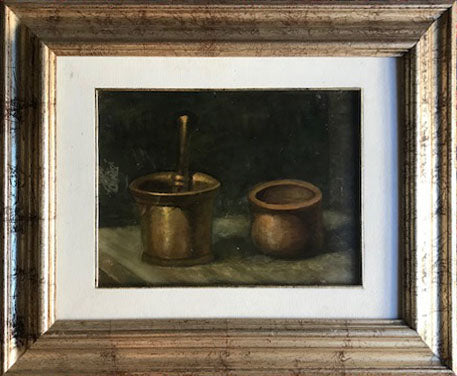 In questo dipinto possiamo notare come il pittore sia alla ricerca di una resa naturalistica viva e coerente. Innanzitutto, attraverso una buona tecnica disegnativa, crea la struttura dell'opera delineando le forme degli oggetti dei quali esalta i valori plastici. A questo punto interviene il colore che cerca, ulteriormente, di evidenziare i volumi rendendo, allo stesso tempo, il soggetto vibrante e pieno di vita. La stesura, nonostante l'opera sia molto figurativa, è piuttosto pittorica, garantendo una grande freschezza di esecuzione. In questo senso fondamentale è anche il ruolo della luce che, arrivando dalla nostra sinistra, colpisce i soggetti provocando dei guizzi che il pittore non esita ad individuare con repentine lumeggiature bianche.