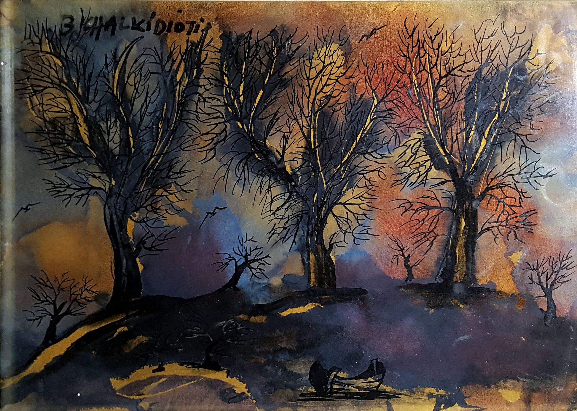 Tutte le opere del pittore Basilio Chalkidiotis sono indirizzate alla ricerca di un canone estetico elaborato e personalissimo. La base di partenza è sicuramente una certa influenza espressionista che si rivela nella tendenza a semplificare le forme. L'artista non si sofferma sui particolari oggettivi e va oltre trasformando i soggetti in emozioni. C'è, in poche parole, un esercizio di astrazione che tende ad universalizzare le forme nel nome di un'estetica che possa essere condivisa. L'uso del colore è prevalentemente simbolista finalizzato ad esprimere una spiritualità più che naturalismo.