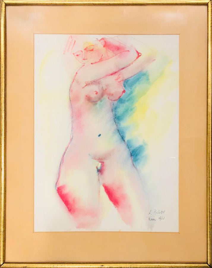 A. Biggi è un artista che si è molto interessato alla figura umana. In queste sue opere ad acquerello cerca un linea espressiva tra figurazione ed astrattismo arrivando ad un'elegante soluzione grafica e coloristica.