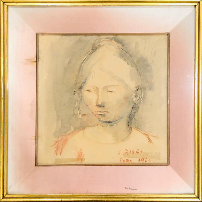 A. Biggi è un artista che si è molto interessato alla figura umana. In queste sue opere ad acquerello cerca un linea espressiva tra figurazione ed astrattismo arrivando ad un'elegante soluzione grafica e coloristica.