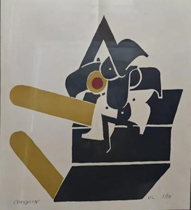 Nella sua ricerca artistica Bruno Chersicla alterna fasi più espressionistiche ad altre nelle quali è ispirato dalla bellezza delle forme pure. L'opera in oggetto fa parte di una serie di Xilografie in cui Chersicla procede ad una ricostruzione della sua percezione e del suo messaggio, secondo un processo meccanomorfico. La forma viene condensata in superfici regolari, i cui i colori moltiplicano il gioco di spigolature e, di conseguenza, di scomposizione e ricostruzione della realtà. Il risultato consiste in una serie di figure dall’aspetto totemico, ermetiche e misteriose, tipiche dell’estetica di Chersicla.