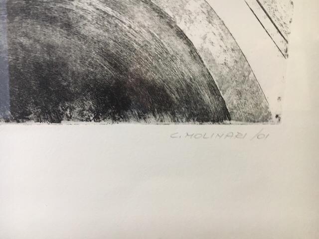 L'opera in oggetto fa parte di una serie nella quale Claudio Molinari esalta l'edilizia industriale del torinese. Rispetto alla produzione dei dipinti possiamo notare, in maniera evidente, uno scarto nel momento in cui l'artista abbandona la sintesi geometrica, tipica delle opere su cavalletto, per adottare una rappresentazione realistica, più tradizionale, nelle acqueforti. Ciò ci permette di apprezzare, nelle incisioni, la straordinaria tecnica di Claudio Molinari, nella resa perfetta di ogni dettaglio architettonico ottenuta mediante un raffinatissimo tratteggio che, facendo leva sulla regia delle ombre e delle luci, esalta i valori plastici degli edifici. Nonostante la maniera tradizionale, realistica, la contemporaneità di queste opere è ravvisabile non solo nella stessa scelta dei soggetti, ma nei tagli compositivi ideati dall'artista, tesi a porre in evidenza la bellezza geometrica e razionalista delle linee e delle forme che compongono queste strutture.