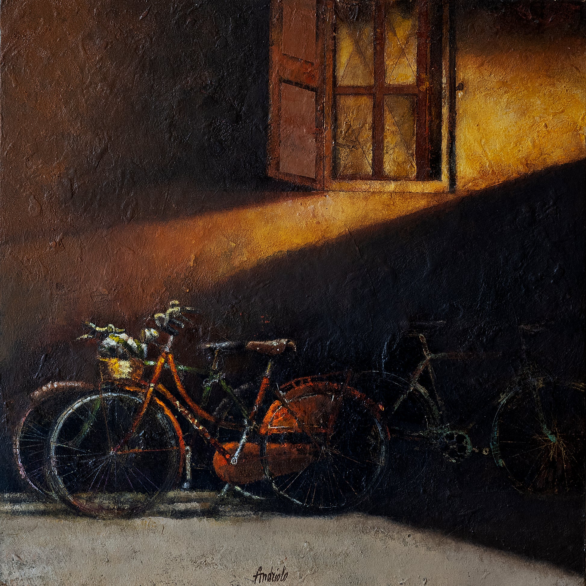 Metafora di un viaggio immaginario in bicicletta attraverso il tempo fino a incontrare la luce di Caravaggio