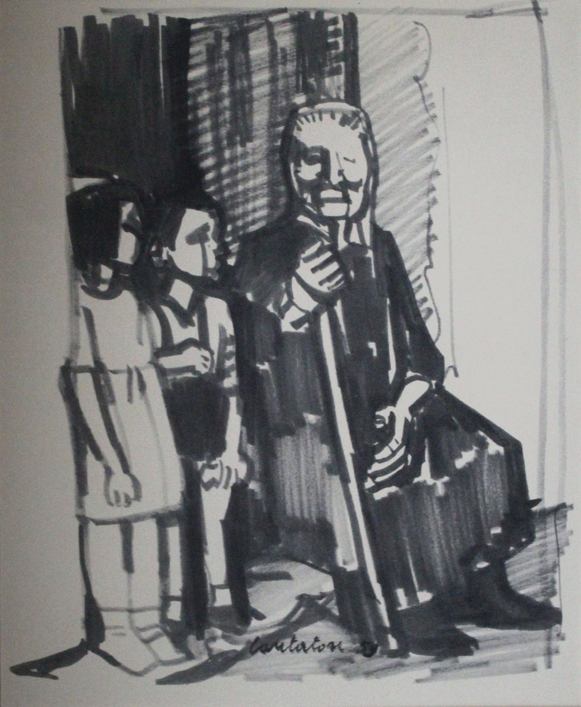 La composizione di questo dipinto rivela l’influenza che la razionalità della tradizione pittorica italiana ha esercitato su Cantatore. Tutta la superficie dell’opera è scandita da marcate linee dai toni scuri, quasi a formare un reticolo che compone le figure di estrazione popolare. I soggetti sono costruiti attraverso una serie di linee pure, le quali vanno a scomporre e ricomporre i visi e i corpi in una rappresentazione prevalentemente piatta ma che cerca la volumetria proprio tramite la complessità del disegno e che guarda comunque a una semplificazione espressionistica. Anche il ritmo generale dell'opera, basandosi prevalentemente su linee spezzate, può essere considerato tendenzialmente espressionista.