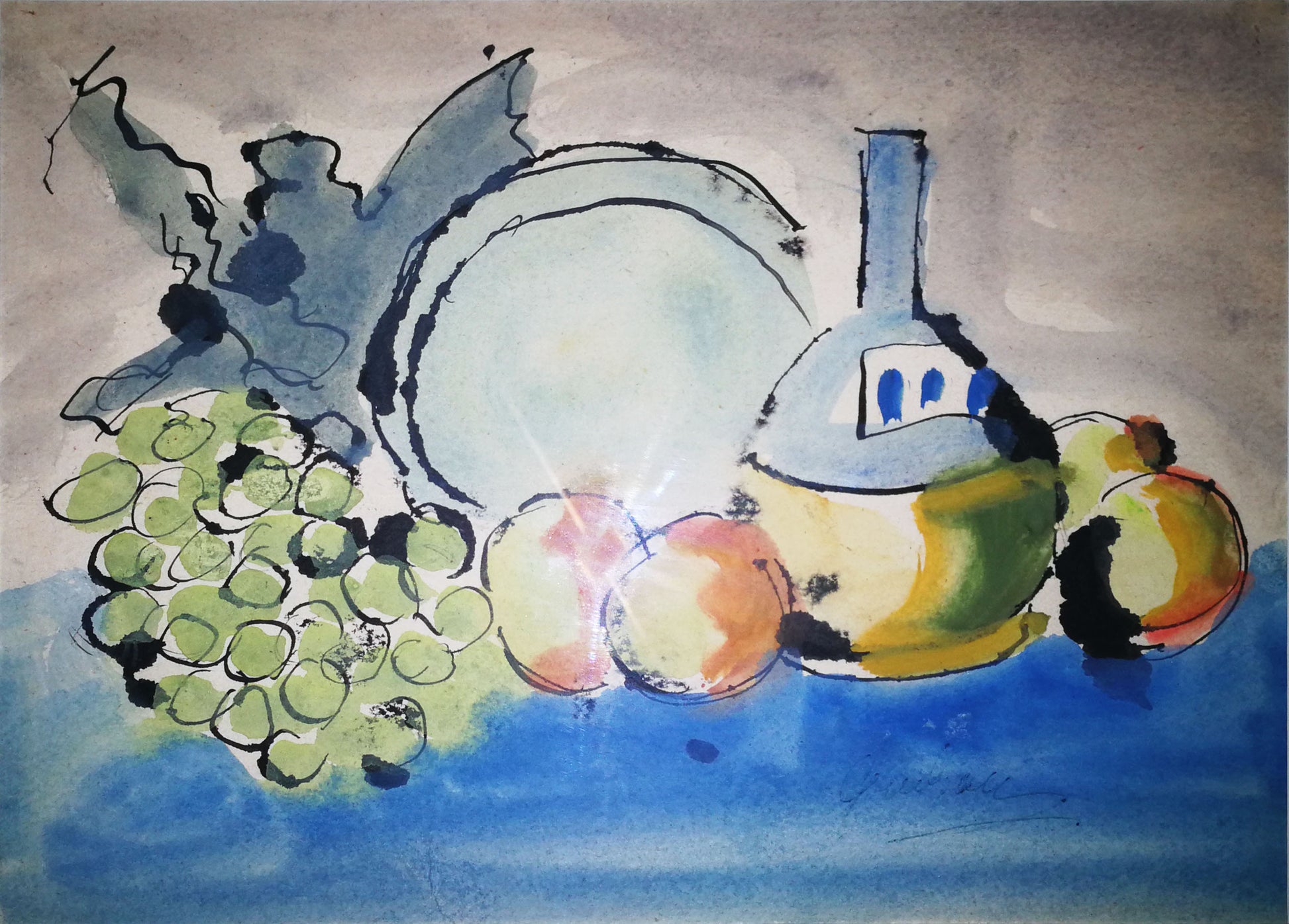 Anche nelle "nature morte" l'artista Edmondo Giuliani conferma la propria propensione alle rappresentazioni veloci e immediate, ma sempre cariche di eleganza ed espressività. Anche qui i mezzi espressivi sono la linea grafica nera che delinea le forme, in modo quasi geometrico e razionale, andando a ricercare una purezza della rappresentazione. A questa purezza si accompagna la stesura del colore ad acquerello, condotto per leggerissime e trasparenti velature, le quali riescono a restituire anche i riverberi di luce sui frutti.