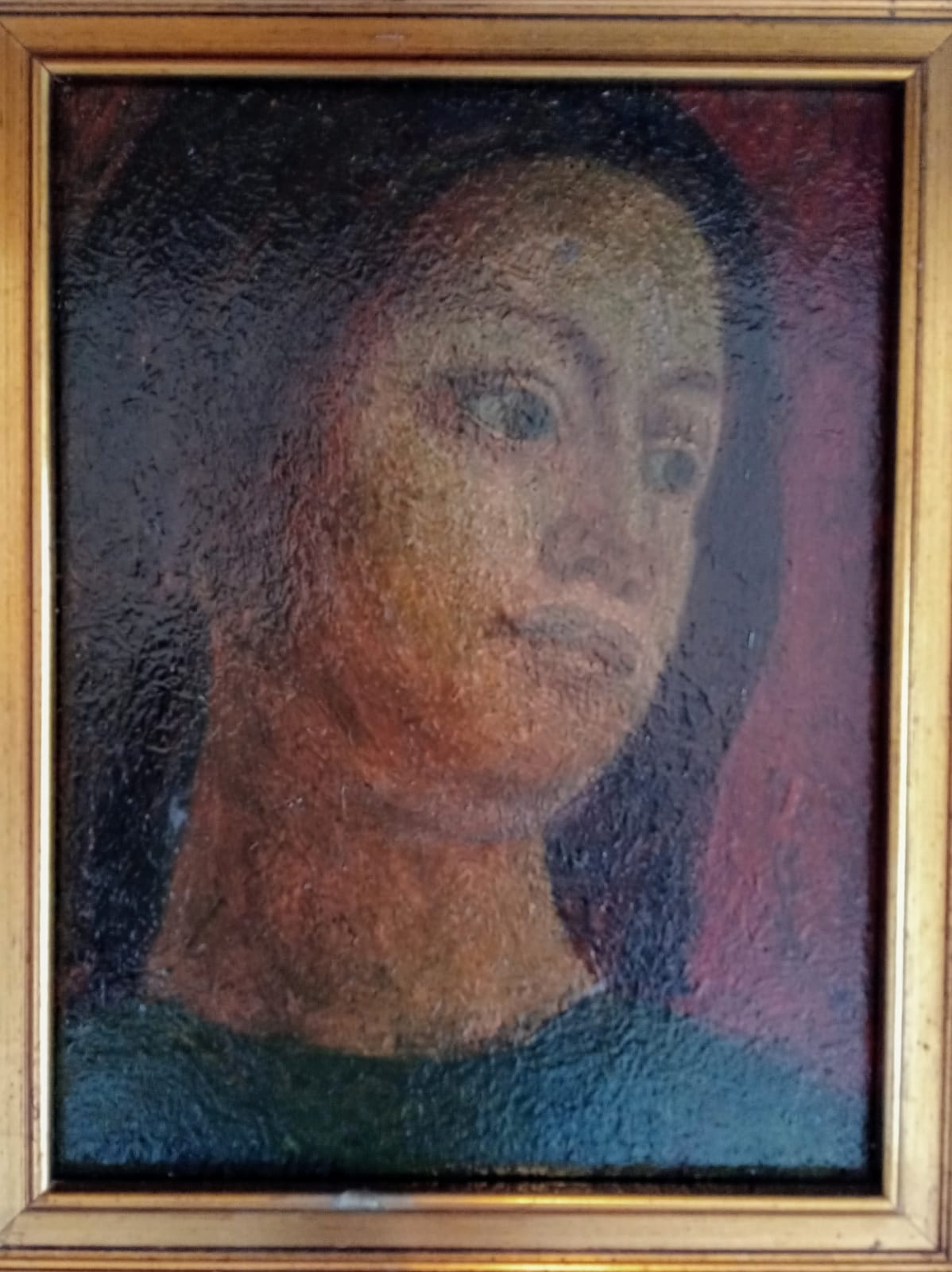 Il linguaggio artistico di Elio Mazzella, specie quando l'artista si occupa della figura femminile, sembra una sorta di mediazione tra tradizione ed avanguardia. Infatti, come possiamo vedere anche in questo studio di volto, le forme del soggetto sono piene e tornite di un plasticismo monumentale che sembra rifarsi ad una linguaggio classicheggiante. Tuttavia l'interpretazione di Elio Mazzella della tradizione, classica e rinascimentale, è originale e risponde a delle istanze estetiche contemporanee. Infatti la resa del volto non è particolareggiata ma risente di un certo processo di astrazione che connota la figura di valori simbolici ed espressivi che vanno oltre il dato sensibile. Anche dal punto di vista formale l'artista opera con una stesura pittorica complessa che sembra quasi corrodere le forme.
