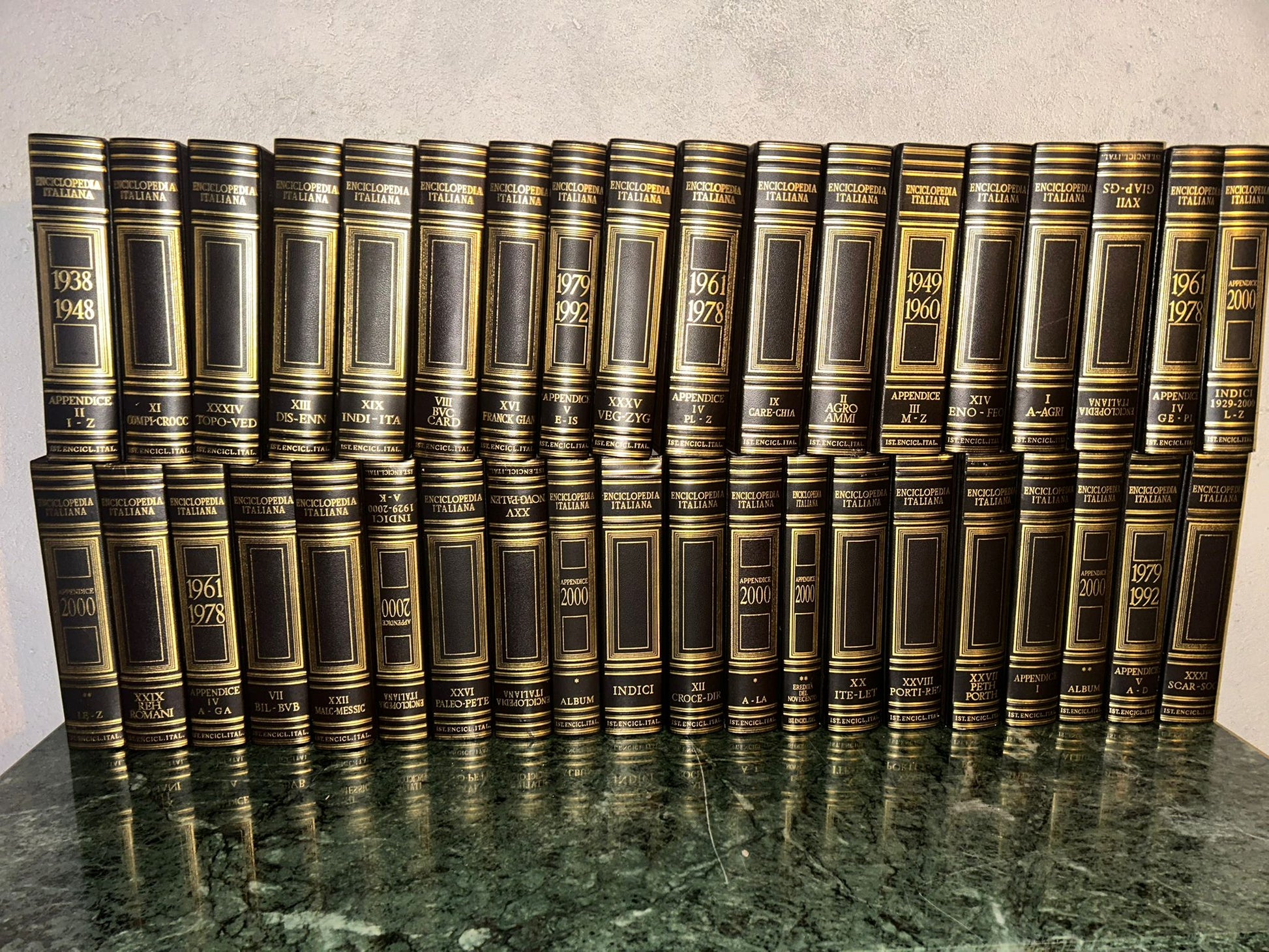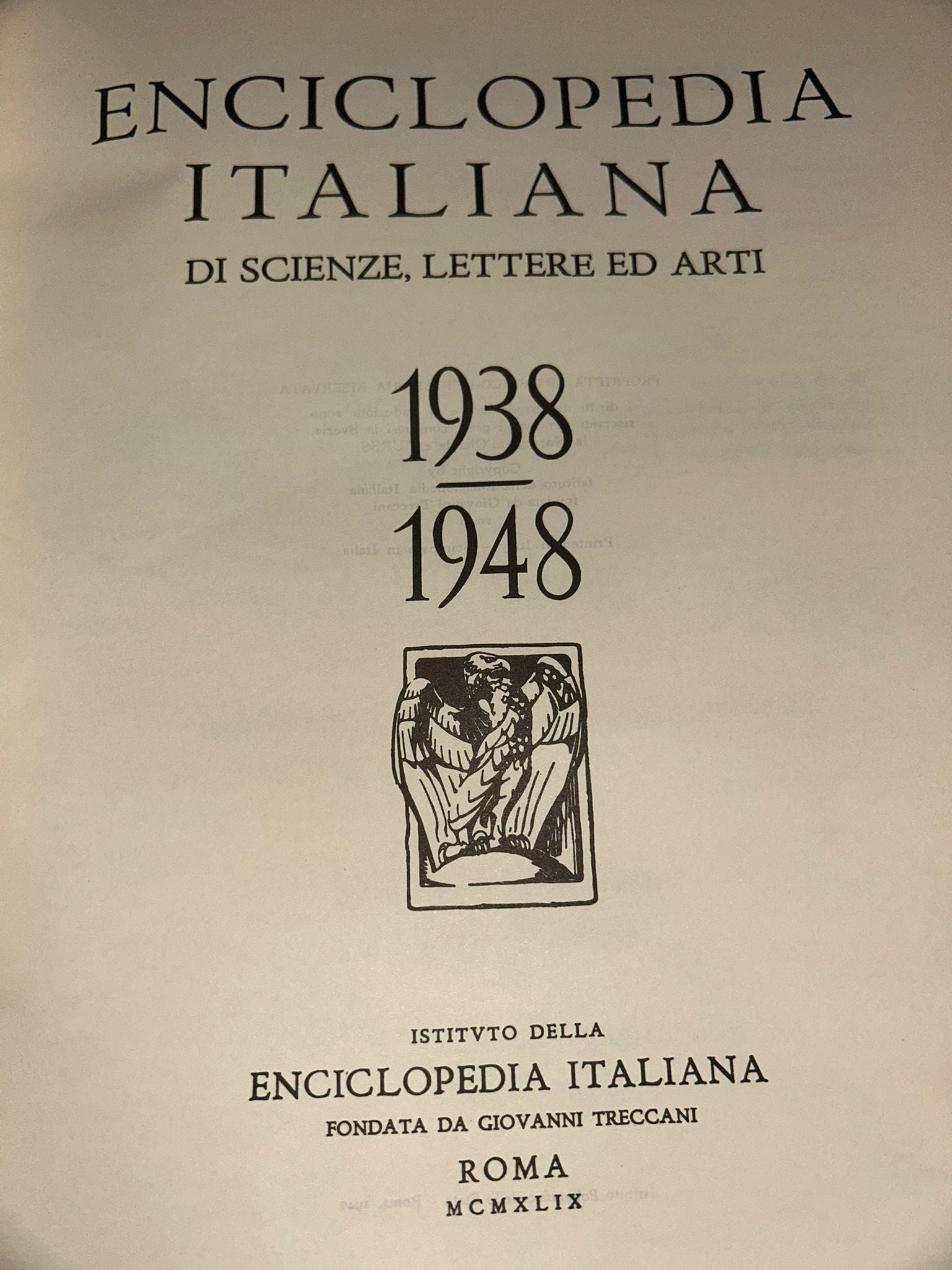 Enciclopedia promossa nel 1925 da G. Gentile e realizzata grazie al mecenatismo di G.Treccani, che costituì e finanziò l'Istituto G. Treccani. Nel 1933 la pubblicazione fu assunta dall'Istituto dell'Enciclopedia Italiana, fondato da G. Treccani e finanziato e amministrato da cinque enti tra cui l'Istituto Poligrafico dello Stato. Con l'intervento degli studiosi più qualificati, furono pubblicati, tra il 1929 e il 1937, i primi 35 volumi, cui seguirono nel corso dei decenni successivi, i volumi degli indici e sei appendici per un totale di 57 volumi.