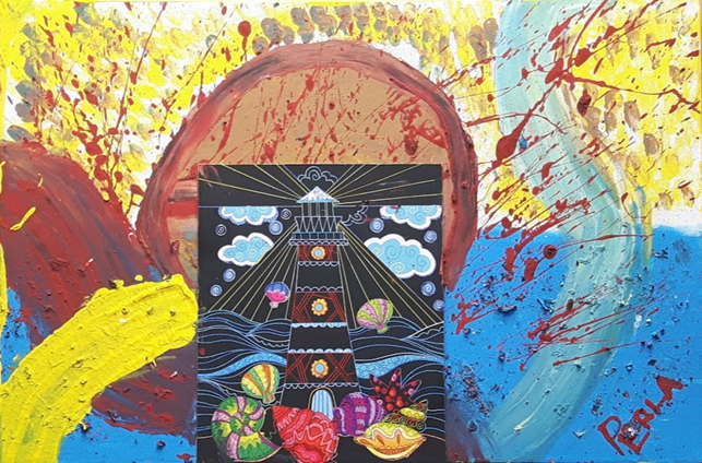 Il quadro viene diviso in due parti: nella parte superiore, oltre che il sole possiamo notare un’infinità di colori. Nella parte inferiore, invece, viene rappresentato il mare. In mezzo al quadro viene applicato un mandala che a parere dell’artista rappresenta la speranza nella vita.