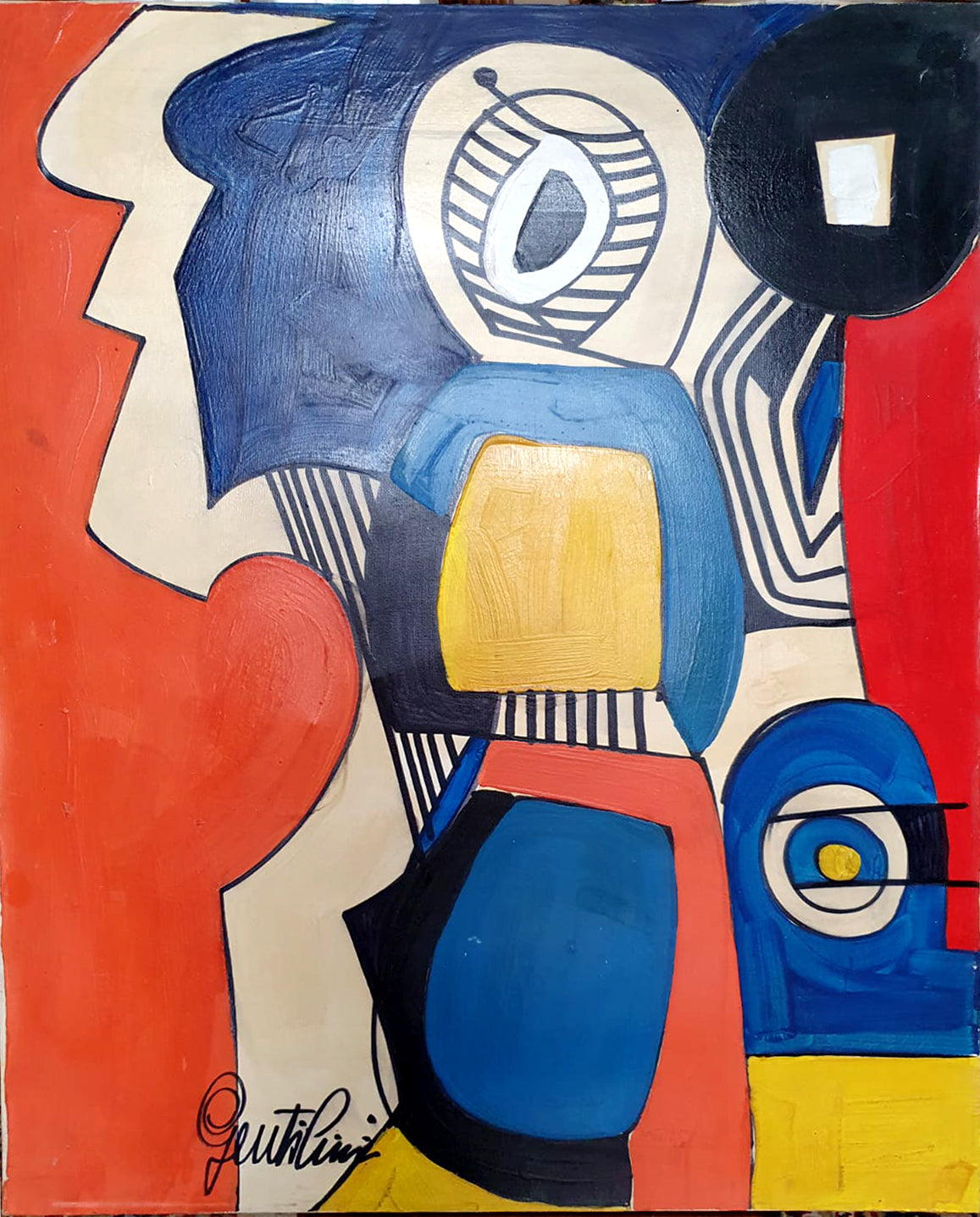 L’opera è una composizione di genere astratto. Astrarre deriva dal termine latino “Abstrahere” che vuol dire estrarre, tirare fuori. Il procedimento di astrazione, infatti, consiste nell’eliminare gli aspetti particolari e individuali di un oggetto per ricavarne un concetto universale. Da Kandinskij a Mondrian, da Pollock a Mirò molti pittori hanno spinto al massimo il processo di astrazione nelle loro opere creando, paradossalmente, forme pure e colori puri che non esistono in natura o traducendo in immagini le loro emozioni e la loro istintualità.