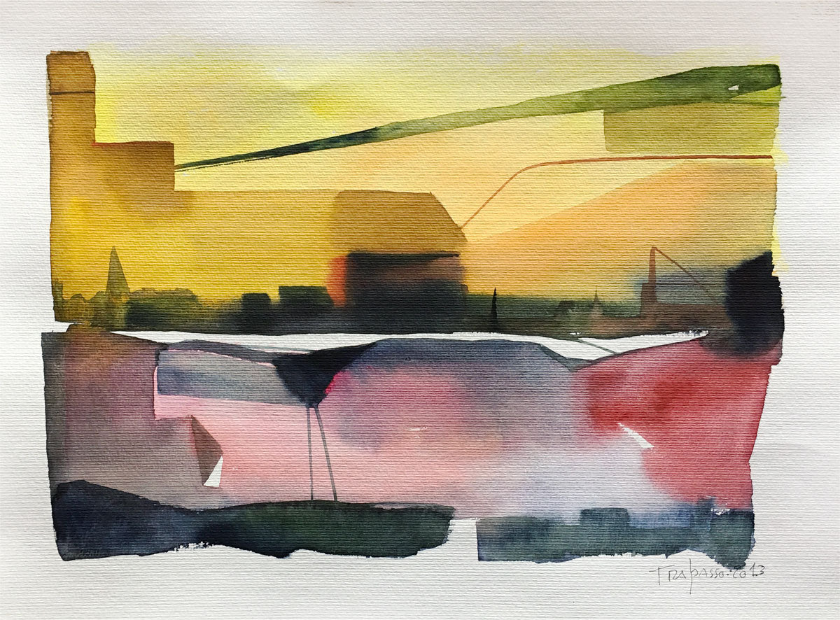 Mi chiamo Giuseppe Trapasso, vivo e lavoro a Roma, sono nato nel 1966. Ho sempre disegnato fin da piccolo, poi in età adulta dopo aver partecipato ad un corso di 2 anni organizzato dal Comune di Roma ho iniziato a dipingere seriamente ad olio partecipando a varie mostre collettive e solo nel 2000 ho fatto un mostra personale. Nel 2007 mi sono avvicinato per curiosità all’acquerello e da quel momento non l’ho più abbandonato. Questa tecnica mi da la possibilità di esprimermi in maniera più libera rispetto all’olio, il mio modo di dipingere è molto istintivo e veloce. Nei miei quadri si possono trovare paesaggi , orizzonti lontani, castelli arroccati su alture impervie, tutto questo compenetrati in forme che ricordano la figura umana. I miei artisti di riferimento sono : J. M.W. Turner per i suoi paesaggi marini e la tecnica magistrale , Felice Casorati per le sue figure statiche ed essenziali , acquerellisti giapponesi zen per il loro modo di gestire la pennellata istintiva e sicura ed anche due fumettisti che per me rappresenta un punto di riferimento per il loro modo di impostare e scomporre il quadro: Sergio Toppi e Dino Battaglia.