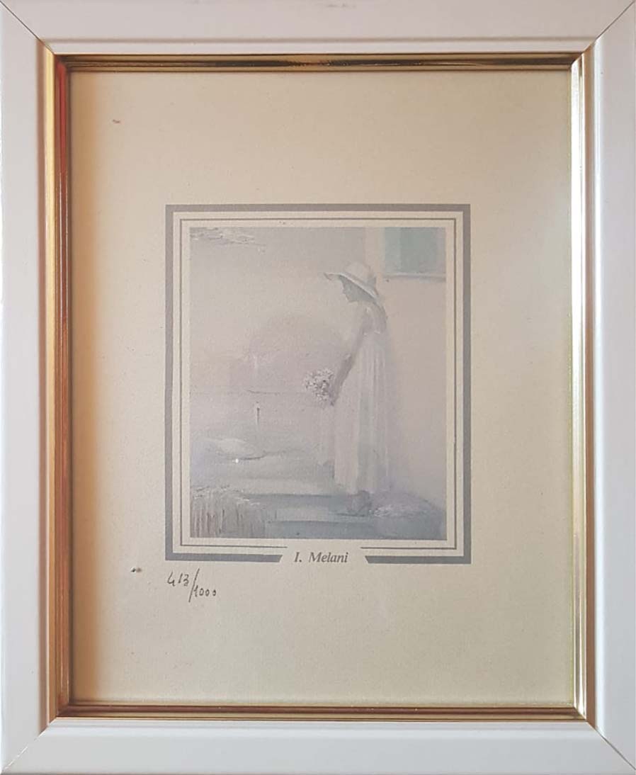 L’opera è esemplare della produzione tipica di Innocenzo Melani. I suoi soggetti preferiti sono le figure femminili, spesso ritratte in pose aggraziate e vestite sempre con un abito bianco leggero e un largo cappello. L’opera in oggetto usa un linguaggio artistico figurativo. Melani si attiene ad una totale resa naturalistica della figura femminile, senza alcuna interpretazione soggettiva. Vi è un realismo quasi fotografico che riporta ogni dettaglio con la massima cura. Anche in questa fotolitografia tuttavia si intravede il leggero pittoricismo che contraddistingue lo stile di Melani. A livello coloristico il pittore opta per un monocromo che enfatizza il senso di soavità e purezza della rappresentazione.