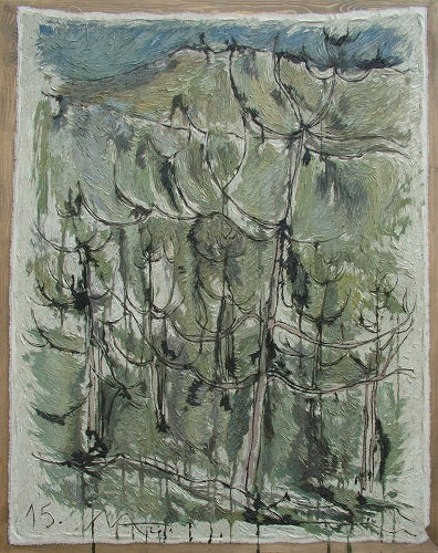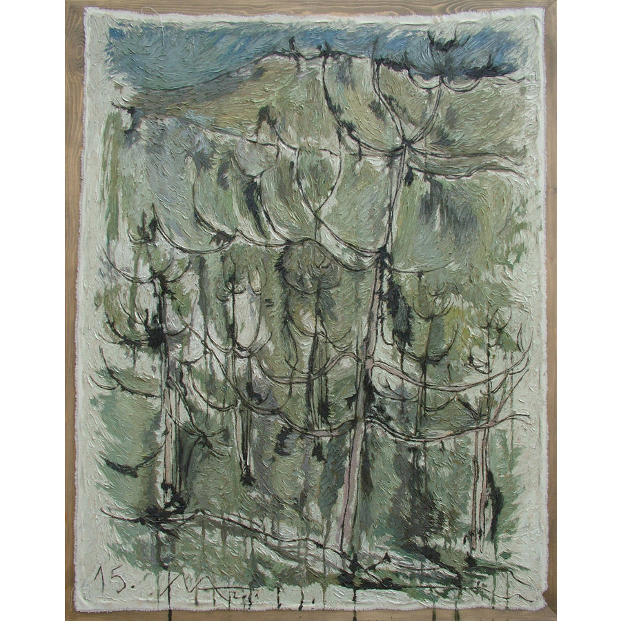 L'opera nasce da un disegno preparatorio solitamente tratto dal vero ed elaborato in studio. Una prima stesura sulla tela avviene a china ed acquerello cui segue la stesura dell''olio a spatola. L'impasto viene apposto sulla tela senza velature e con un''unica stesura.