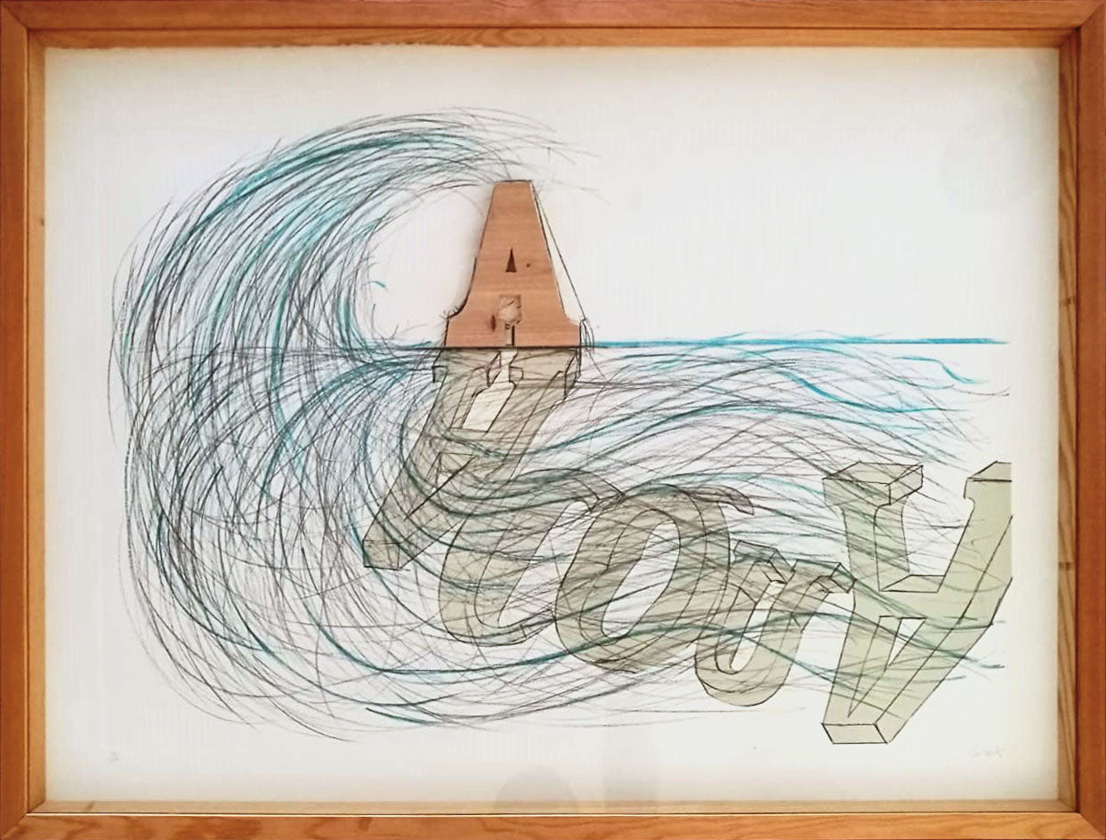 In questa opera sono evidenti molti dei concetti peculiari della ricerca di Mario Ceroli. Protagonista dell'opera è una lettera in legno, un semplice oggetto che potrebbe provenire da un sillabario viene preso e ricontestualizzato come opera. Tramite questo spostamento la singola lettera alfabetica viene innalzata quasi come un simbolo misterioso, un monogramma dai significati reconditi. A questo punto Ceroli gioca con i significanti e i significati. Dal monogramma "A" infatti scaturisce la parola "ACQUA" scritta in lettere cubitali (con chiaro riferimento all'estetica pubblicitaria) e, allo stesso tempo, si sprigiona un flusso segnico che vuole rappresentare visivamente l'acqua con una modalità gestuale che si ricollega all'Espressionismo Astratto. Tutto ciò sta a dimostrare come anche in un semplice elaborato grafico Ceroli riesce a creare un'opera complessa che gioca su diversi livelli concettuali e comunicativi.