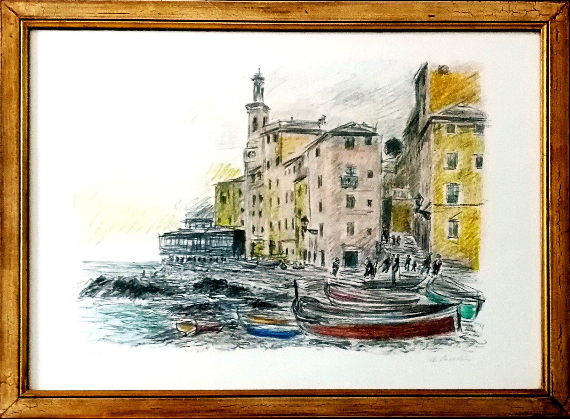 In questa litografia possiamo ammirare un Cascella diverso da quello della sua usuale produzione su cavalletto. Mentre negli olii su tela, ma anche in buona parte della sua opera grafica, in Cascella c'è sempre una prevalenza del colore, pieno di vibrazione luminose, in questo caso invece ci troviamo di fronte ad una vera e propria opera di disegno. La struttura dell'opera, infatti è determinata dal disegno, il quale, oltretutto, mostra l'abilità dell'autore a realizzare un suggestivo scorcio marinaro con un tratto rapido e sintetico. Stessa scioltezza, che fa guadagnare l'opera in espressività, la troviamo anche nella distribuzione del colore.