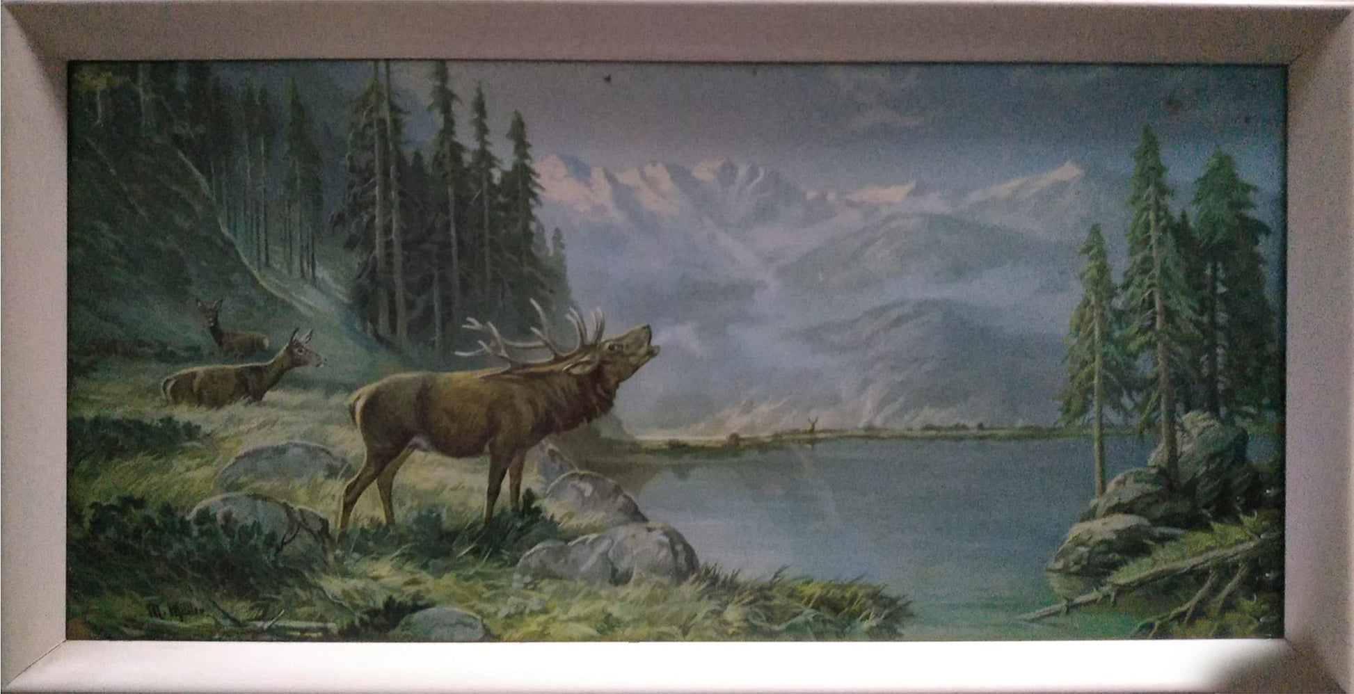 Le rappresentazioni di animali nell’arte hanno origini antichissime, tanto da comparire anche sulle pitture rupestri di epoca primitiva. Per questioni di culto vari tipi di animali compaiono nelle testimonianze di diverse civiltà di epoca antica. E’ soprattutto nel medioevo, nell’ambito del Gotico Internazionale, che le raffigurazioni di animali si diffondono come veri e propri ritratti dal vero, sia all’interno di opere o nei quaderni di disegni e bozzetti. La presenza degli animali come soggetti nell’arte rimarrà costante fino all’epoca contemporanea. In questo dipinto il soggetto animalesco si unisce a quello della scena di genere incontrando un altro tema molto diffuso nella Storia dell'Arte, ovvero quello della scena di caccia. Moritz Müller fu uno dei più importanti esponenti di questo genere pittorico nell'ambito dell'arte tedesca del XIX secolo.