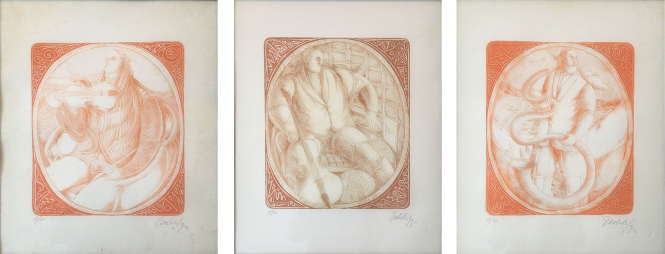 In questa serie di litografie l'artista Navarrino punta su un'esaltazione del plasticismo dei soggetti, di cui enfatizza i caratteri e le fisionomie. Allo stesso tempo la sua rappresentazione è caricaturale, dettata da un ironico gusto per il grottesco. In ogni caso, al di là di un qualsiasi intento satirico rimane l'eleganza per una veste formale oggettiva interprete di soggetti eccentrici e fantasiosi. Notevole è anche l'abilità tecnica con cui vengono esaltati i volumi e il tratteggio che crea suggestive sfumature.
