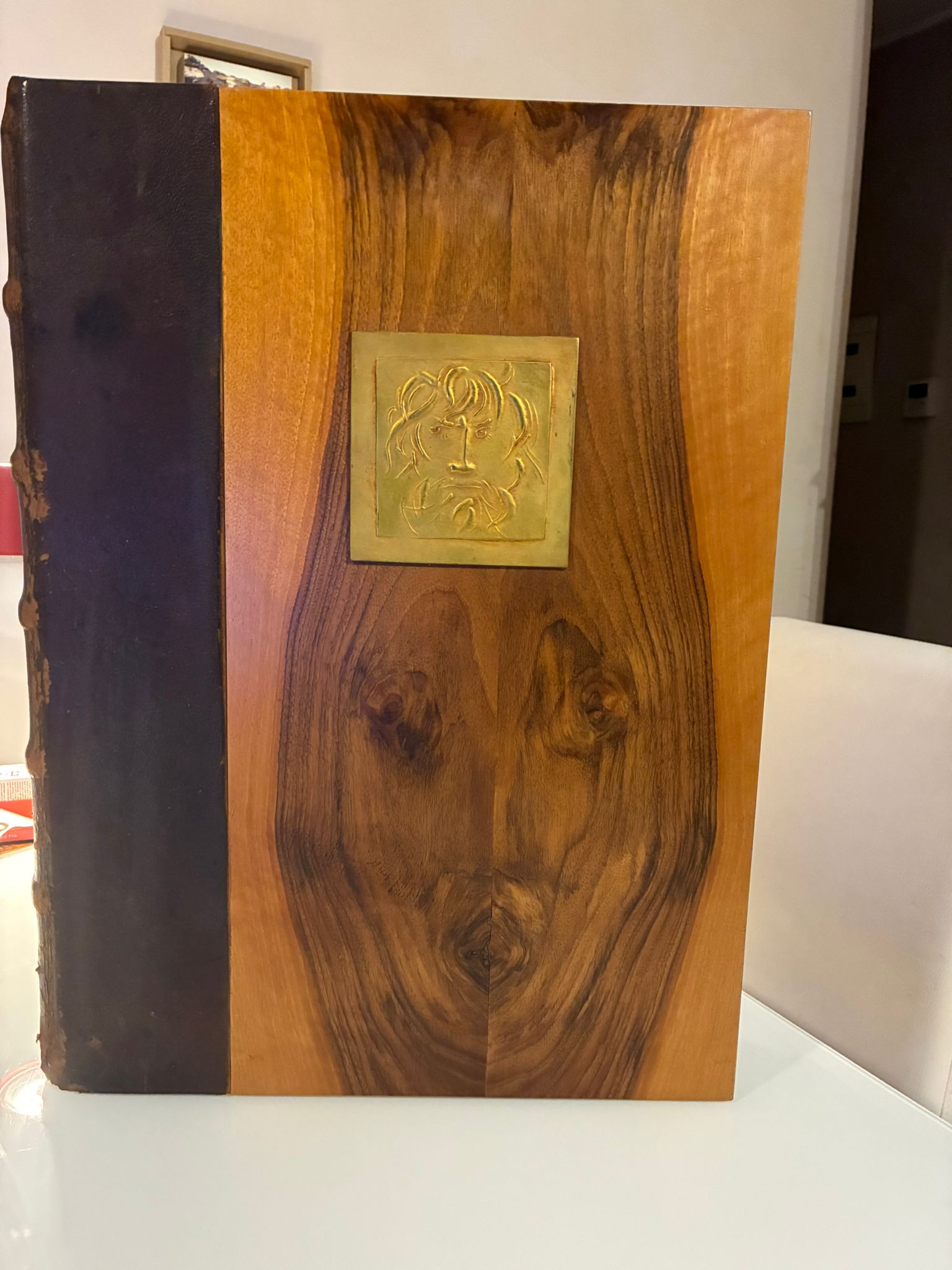 Maestosa edizione dell’ “Odissea”, stampata nel 1977 da Delfino Edizioni d’Arte (Roma) con carta fabbricata a mano appositamente per l’opera dalle cartiere Miliani/Fabriano, impiegando cenci di canapa e lino macerati, arricchita da venti tavole di Giacomo Manzù e da borchia in bronzo fuso dorato raffigurante Ulisse, sempre opera dello scultore e pittore italiano Manzù.