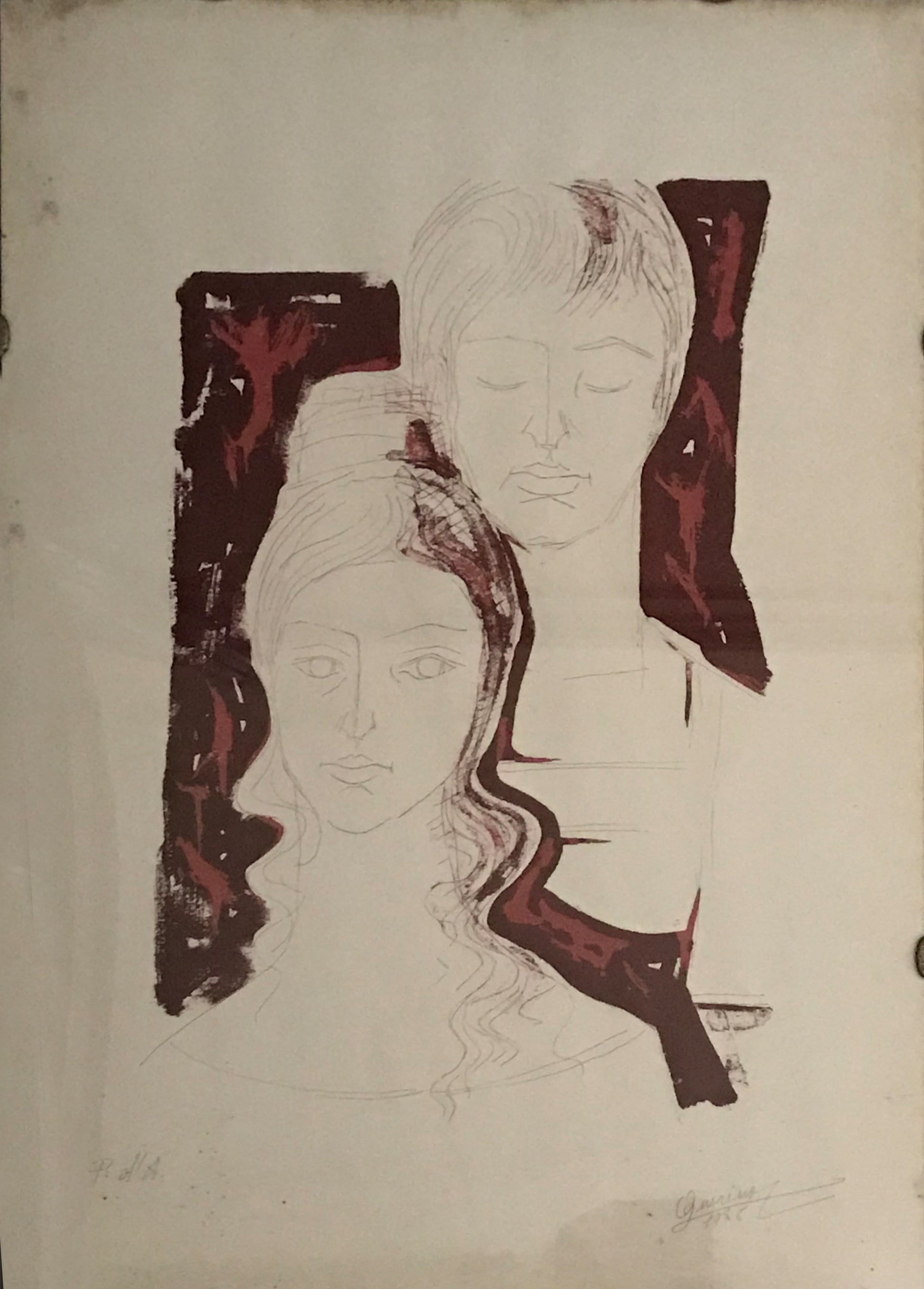 In questa prova d'autore la modalità compositiva di Quirino De Ieso viene fuori in una versione semplificata. L'elemento chiave è sempre la linea, che in questo caso, però si limita a tracciare le forme, sintetizzare le fisionomie accennare qualche volumetria. Le figure, come è tipico dell'estetica di questo artista, sono sempre iconiche, private di qualsiasi particolarismo e con un carattere universale.