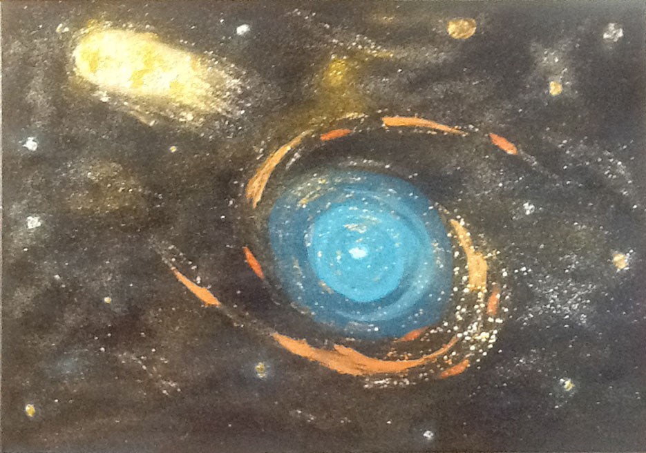 La pittrice Raffela Ranieri affronta questo dipinto con tematica fantascientifica con grande abilità tecnica. Innanzitutto la composizione è incentrata sulla forma circolare della galassia che campeggia al centro dell'opera. Tutto è congegnato al fine di comunicare una situazione fluttuante, priva di gravità. In questo senso interviene anche il colore, steso con un pittoricismo che sembra carico di sostanze gassose. La pennellata è rapida a cogliere forme sfuggevoli in perpetuo movimento.