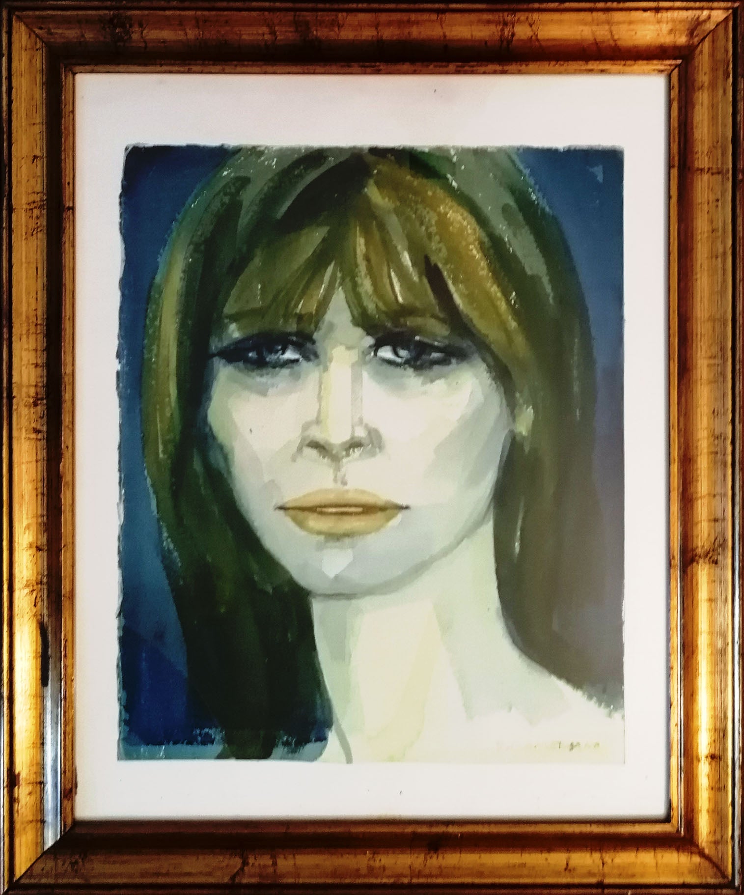 Romano Conversano è un pittore che si è occupato soprattutto di figure femminili durante la sua carriera artistica. In questo acquerello dà una versione sintetica e minimale in cui sfrutta la forza espressiva del colore. Il colore steso con larghe pennellate e ponendosi su diversi piani, riesce a strutturare il volto della donna, caratterizzandolo fisionomicamente ed espressivamente.