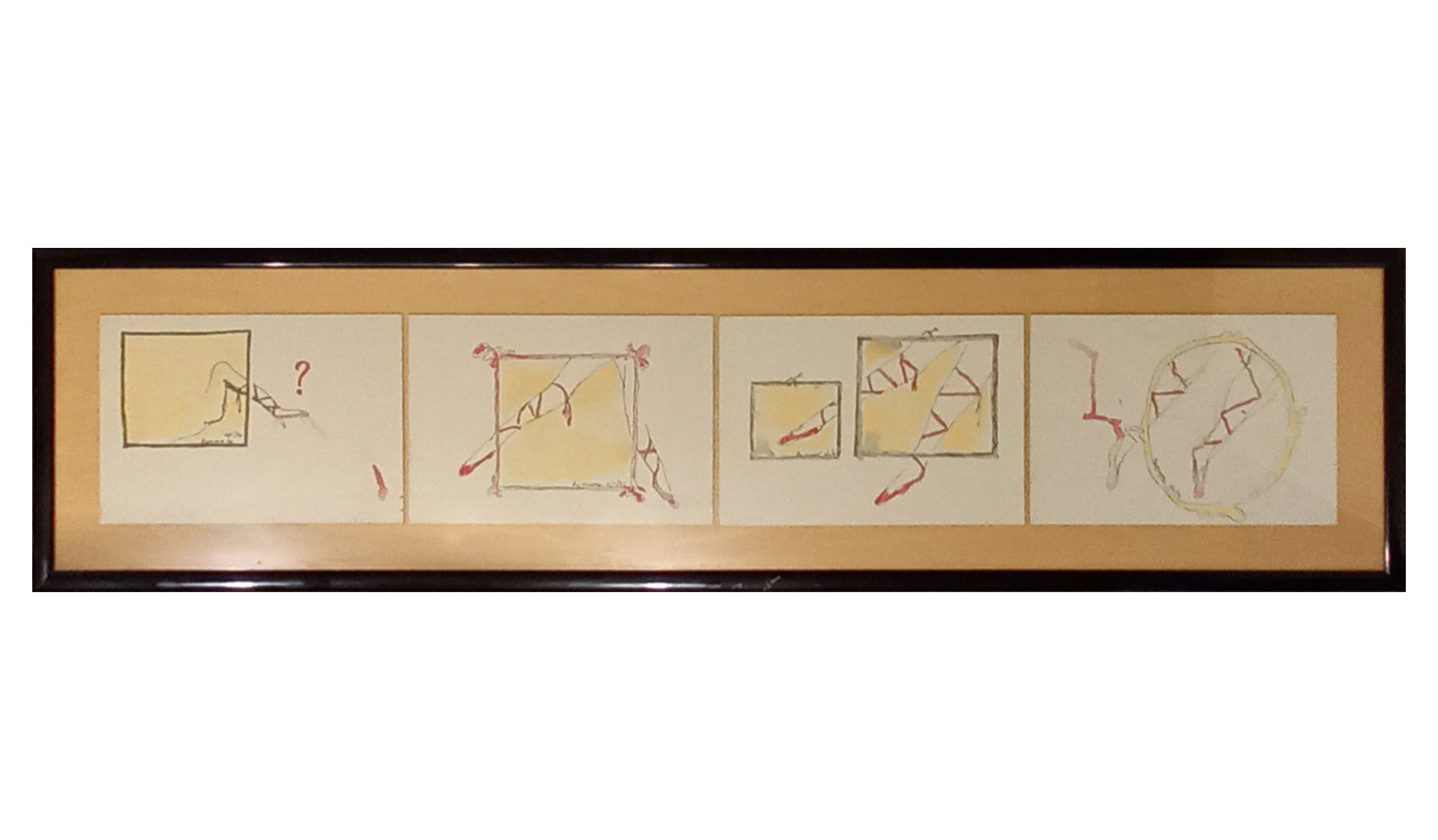 Il linguaggio stilistico di Romano Isidoro Domenico parte sicuramente dalla tradizione surrealista di un figurativismo illusionistico ed ambiguo, ma essa viene rielaborata nel senso di un oggettività asciutta che si rifà, palesemente, anche ad elementi di metafisica e realismo magico. Gli oggetti ed i soggetti impossibili di Romano Isidoro Domenico, infatti, vengono delineati mediante una linea pura ed un disegno netto e semplificato. Così come i colori sono stesi per campiture compatte. Gli spazi sono enigmatici ed immersi in un'atmosfera di immobilità e silenzio. L'opera presente consta di quattro disegni su carta in cui Romano Isidoro Domenico si focalizza sul soggetto della “ballerina”. Anche questo tema, così diffuso nella storia dell'arte, viene trattato da questo pittore in maniera eclettica e originale. Egli infatti si concentra sul particolare delle gambe e unisce il suo solito figurativismo puro e asciutto a delle astrazioni geometriche. Il risultato è una composizione estremamente creativa ed equilibrata.