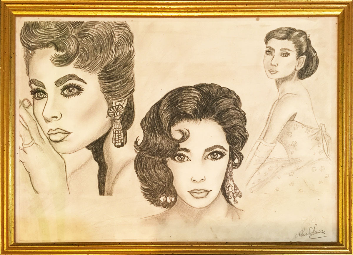 Questa opera realizzata in tecnica mista su carta può essere considerata un campionario delle diverse qualità dell’artista Rosa Petrosino rispetto la resa naturalistica della figura umana. L’opera è infatti è composta di più soggetti che ci mostrano le possibilità espressive del ritratto frontale, della figura di tre quarti e del mezzo busto. A livello fisionomico il tratto è preciso nel riportare ogni dettaglio, gli occhi sono grandi ed espressivi, specchio interiore delle dive. Da notare la fitta trama dei capelli che con un tratteggio sottile descrive con raffinatezza le acconciature dei soggetti. Contribuisce alla verità della rappresentazione anche la libertà dei movimenti i quali, anche se appena accennati, risultano sciolti e naturali. Fondamentale, infine, è il gioco delle ombre, che con leggerezza si dispongono sui soggetti a rilevare la loro volumetria tramite un sapiente uso delle sfumature.