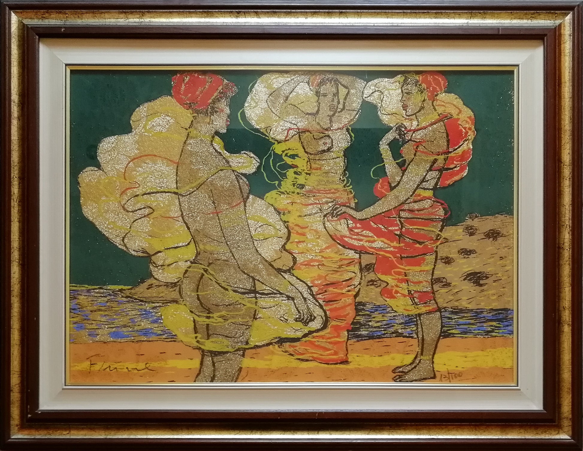 La composizione si adatta perfettamente allo stile di Salvatore Fiume: le vesti esotiche e la provenienza del soggetto da un tipo di cultura tribale, ricca di valori primordiali, si sposano perfettamente alle ruvidezze stilistiche della fase più espressionistica del maestro siciliano. Il tratto, volutamente grossolano, sbozza le figure relegandole ad uno stato grezzo che è sinonimo di sintesi e, dunque, di espressività. A tale condizione si adatta anche la gamma coloristica, impostata su toni terrosi ma pieni di luce.