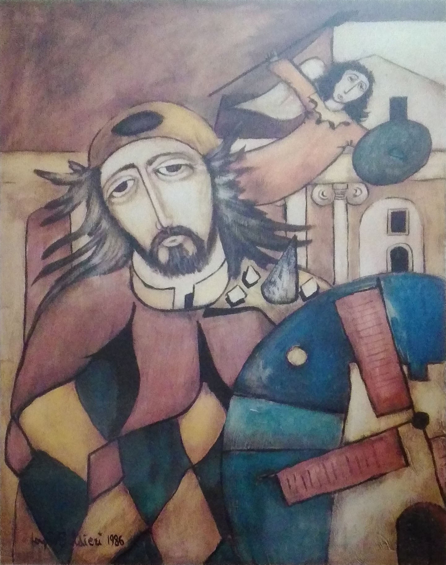 Sergio Baldieri è un pittore vissuto nel XX secolo dallo spirito eclettico e portato alla sperimentazione. Il linguaggio artistico di Sergio Baldieri è diretto ad esercitare un processo di sintesi nei confronti della realtà fenomenica. Il mondo viene ridotto in una versione minimalista in cui acquisisce risalto la pennellata dell'artista, gestuale e istintiva. Su una superficie bidimensionale Baldieri delinea le forme dei suoi soggetti, tramite una stesura nervosa. Con poche linee e poche tracce di colore viene delineata una forma. Anche per quanto riguarda il colore Baldieri selezione gamme cromatiche antinaturalistiche, tese ad esaltare ulteriormente l'espressività del dipinto.