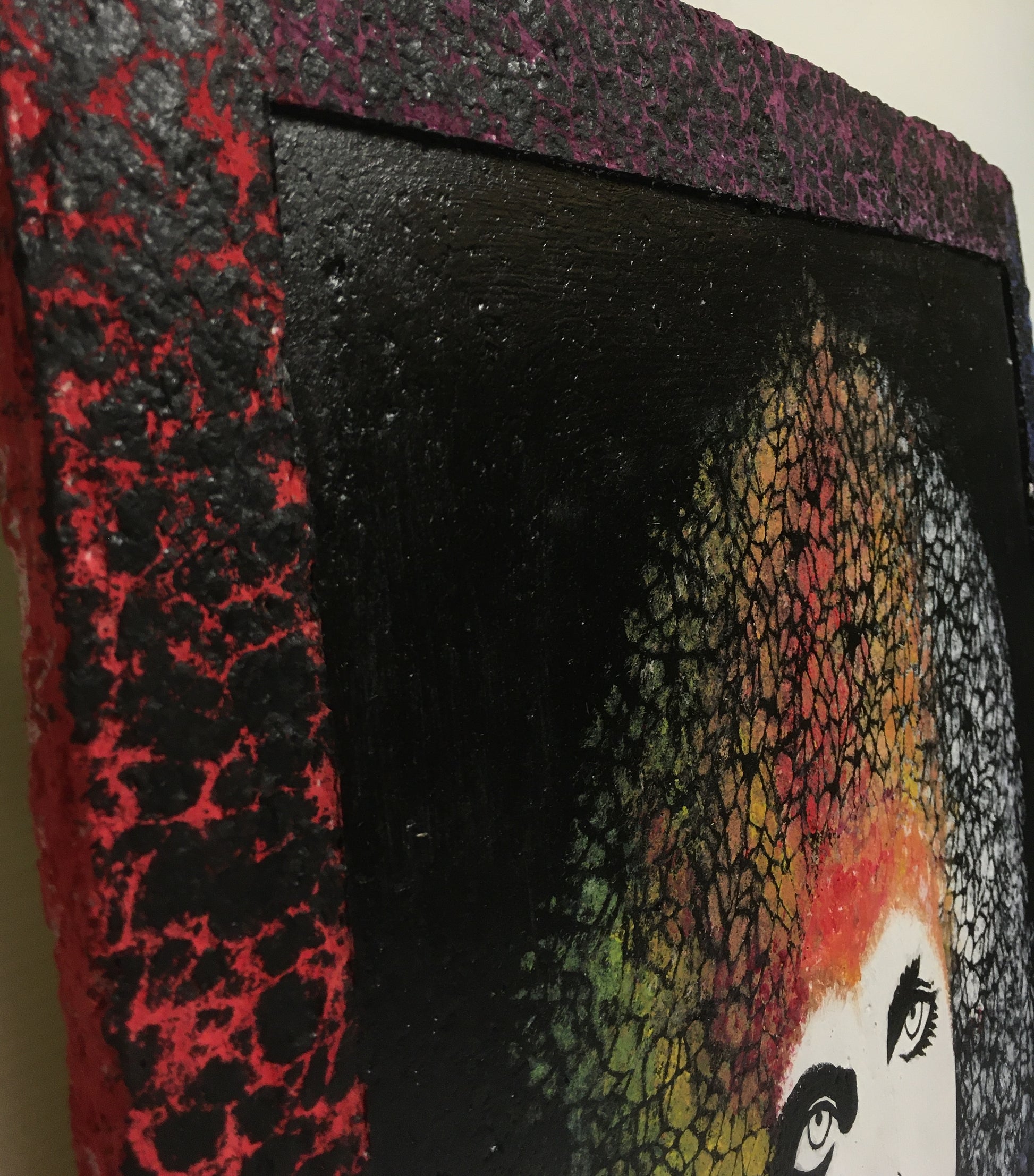 Composto Pannello "Unibox”. Cornice e piano sono costituiti dello stesso materiale, le fibre naturali che costituiscono il composto, allo stato liquido vengono versate in un controstampo che ne determina la corporatura. La proprietà materica del composto va a fondersi al prodotto artistico finale, dando una sensazione di plasticità unica.