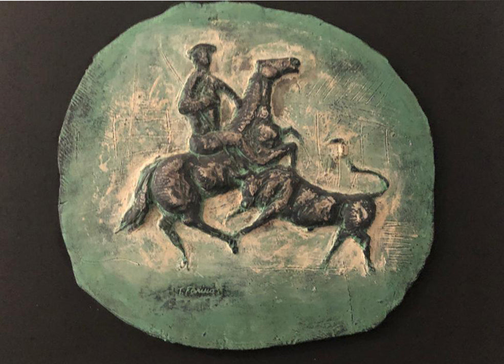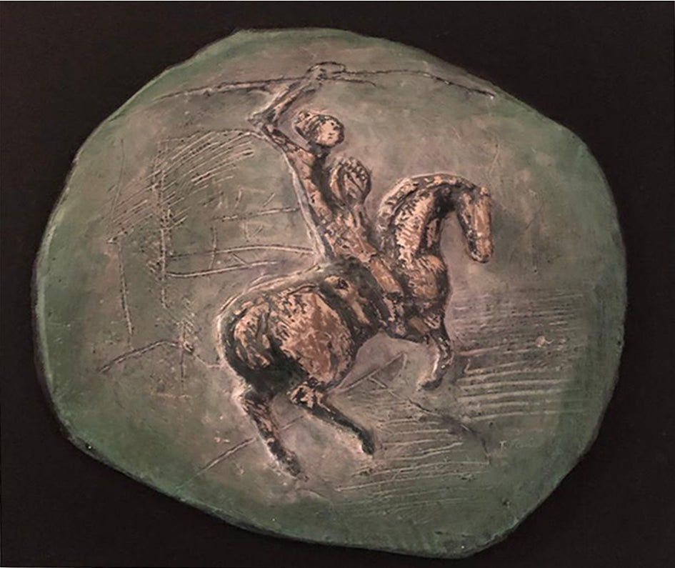 Il soggetto del monumento equestre, o dell’uomo a cavallo, ha origini molto antiche. Risale al mondo classico il cui più antico esempio è il “Cavaliere di Rampin” e per l’arte romana ebbe una fondamentale importanza politica. Generalmente si tratta di sculture a tutto tondo, ma non mancano i casi in cui questo soggetto compare su supporti dipinti. Il tema dell’uomo a cavallo ha attraversato tutta la storia dell’arte, non solo occidentale, ed è diventato oggetto di ricerca per artisti contemporanei quali Marino Marini, Arturo Martini o Aligi Sassu.