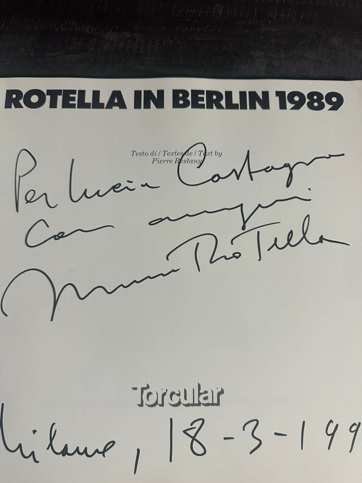 PUBBLICAZIONI : PIERRE RESTANY, ROTELLA IN BERLIN 1989, CATALOGO MOSTRA SCH. 5 FERRARA 1991, DA PICASSO A BOTERO EDIZIONE TORCULAR PAG. 297 , MILANO 2004, MIMMO ROTELLA OPERE SCELTE 1958-1996, LA LINEA EDITRICE PAG. 31 PADOVA 2011