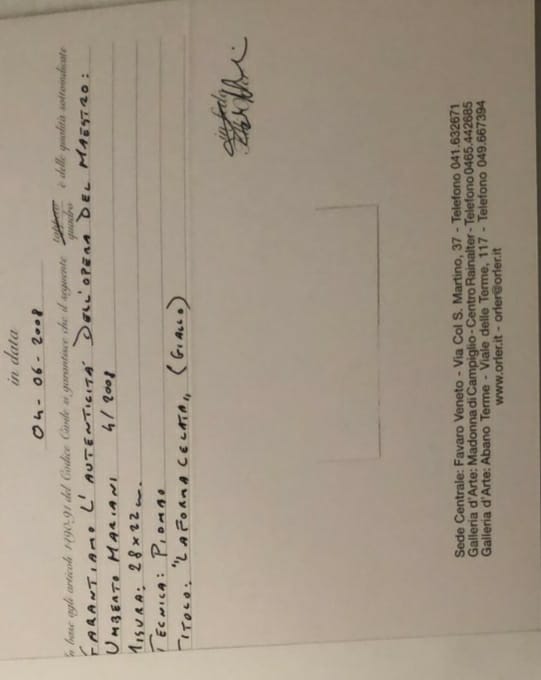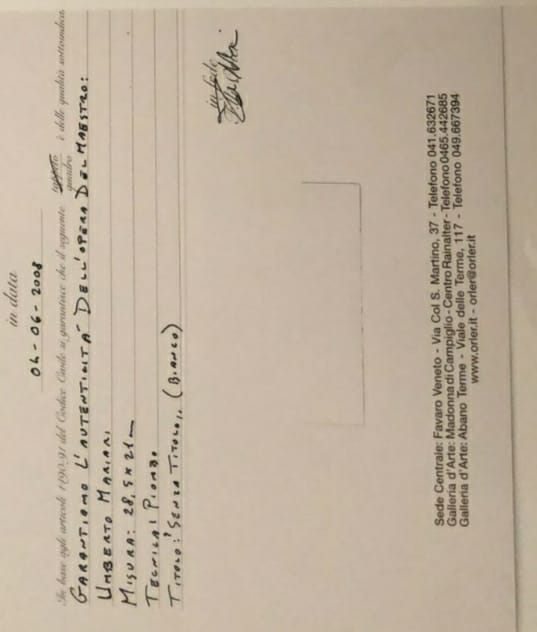 La transazione avviene nella massima sicurezza del venditore e dell'acquirente, siamo noi a farci carico della conformità (provenienza, autenticità, stato di conservazione) dell'opera e ad occuparci della spedizione.