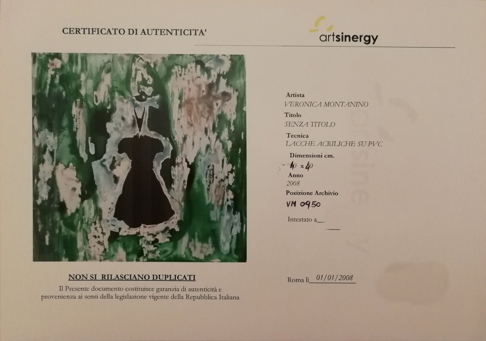 Possiamo notare come in questa opera Veronica Montanino realizzi una sorta di connubio tra Poetiche dell'Oggetto e Informale. Infatti protagonista dell'opera è un semplice abito, un oggetto di uso comune riprodotto, però, in maniera ermetica com'è usuale in questa artista. L'oggetto viene quasi evocato in negativo, ovvero formato dalla stesura pittorica gestuale e materica (dunque informale) che ha intorno.